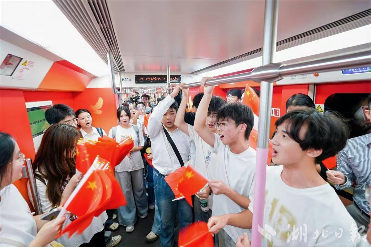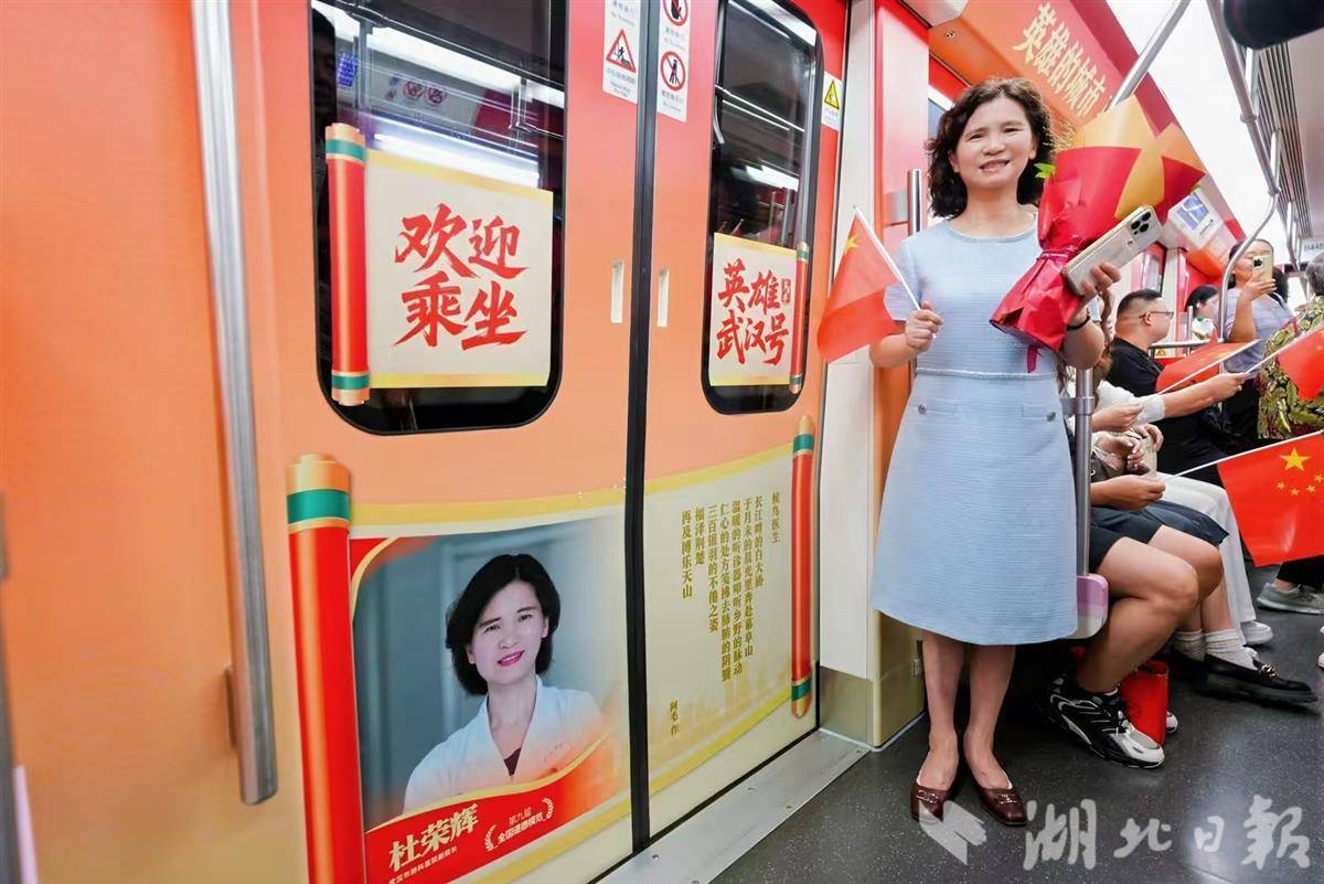 车厢内,武汉市民刘阿姨挥舞着手中的小国旗,眼含热泪,动情高歌:“听着这歌,看着这红旗,就想起了这几年咱们武汉不容易但更不屈的日子。这列英雄车开得好,让我们每天都记得这座城的根和魂!”